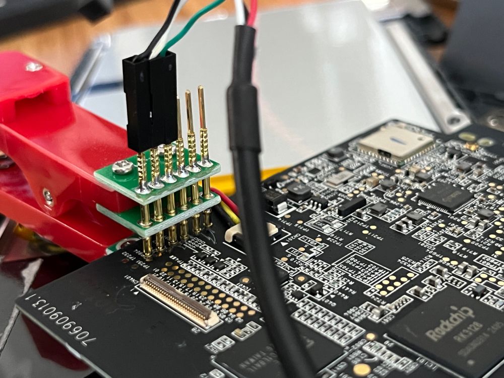 This pogo-pin probe clip from @adafruit.com made it so much easier to get at a uart than soldering temporary wires