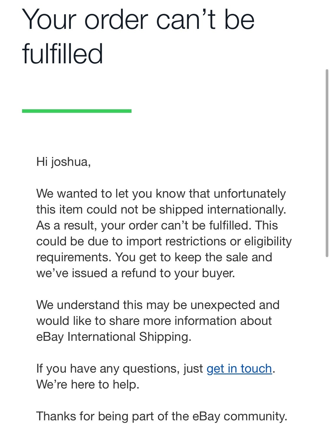 Someone recently bought two on eBay through their International Shipping program where I only list them as shipping domestically and eBay has me ship to a local forwarder but they deal with repackaging it and shipping it internationally. Apparently they also failed because they just canceled this order but somehow I don't have to refund the buyer and eBay pays for it. I guess I don't get my batteries back though?