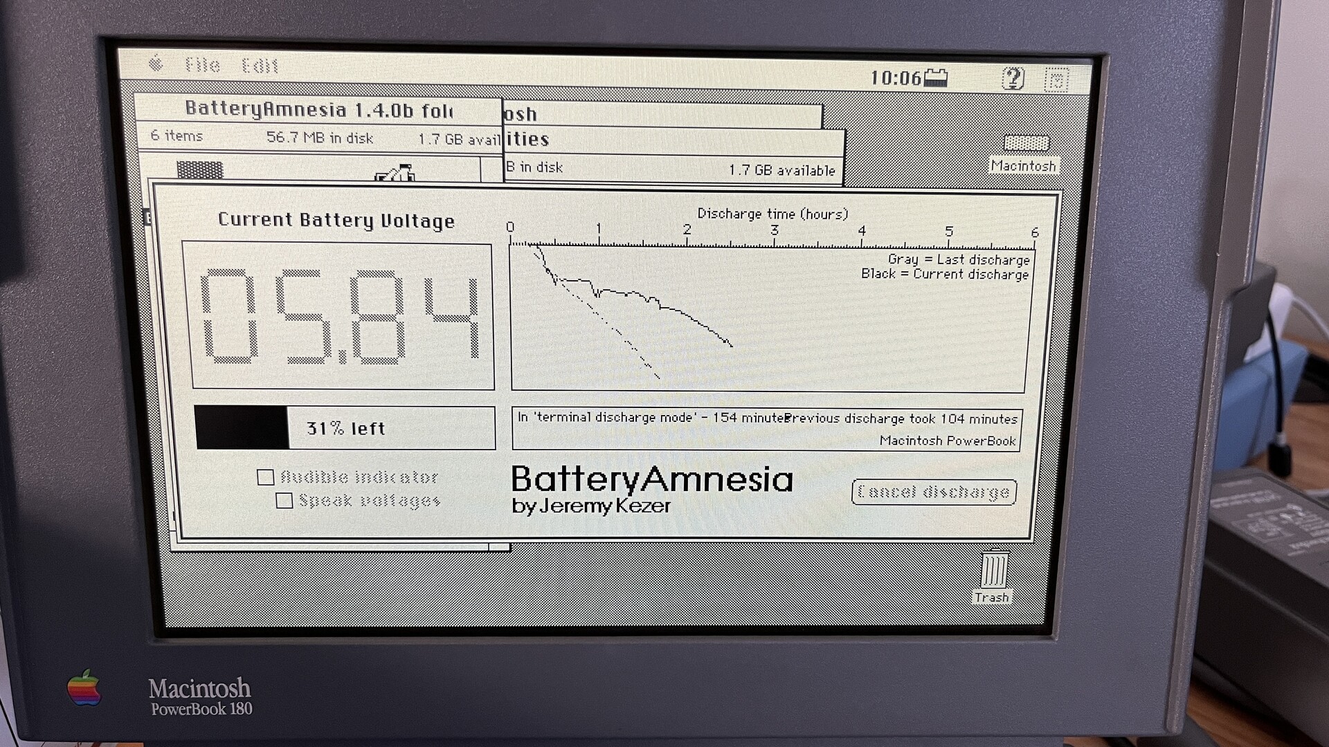 That's with BatteryAmnesia forcing the CPU to full speed, the display to max backlight, and not letting anything sleep. I'm sure the BlueSCSI instead of a spinning HD helps a lot.