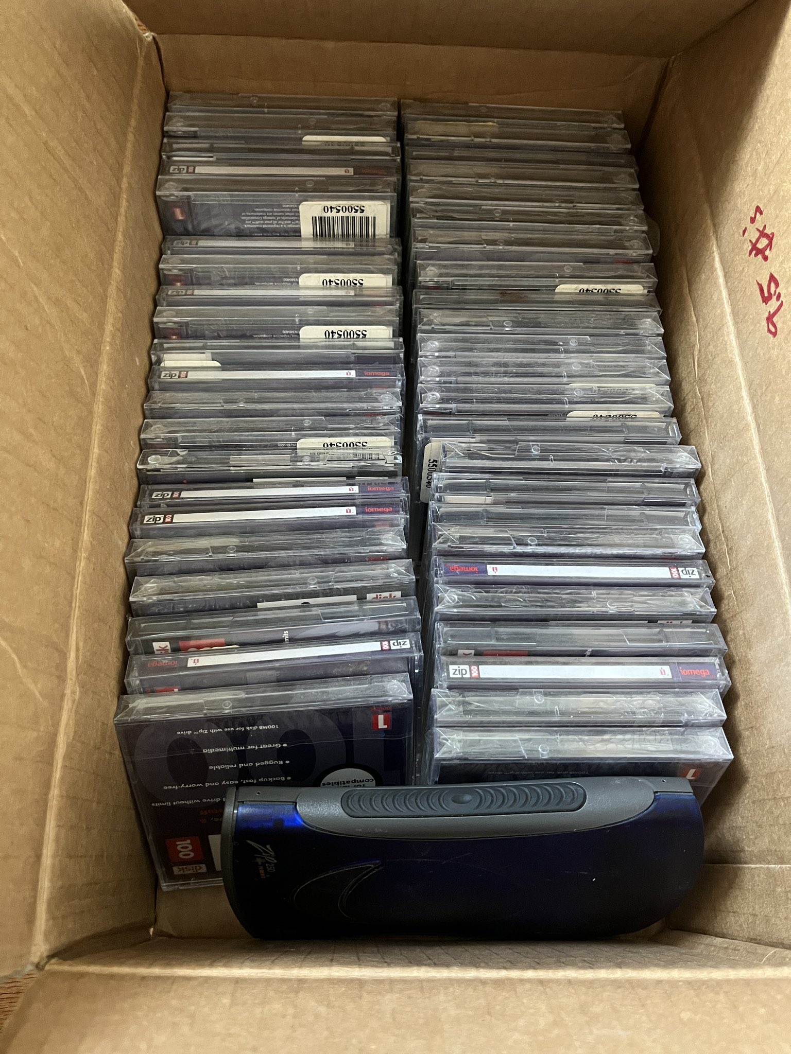 I had too many before but I couldn't pass up this box of 45 sealed Zip disks for $11 so now I definitely have too many